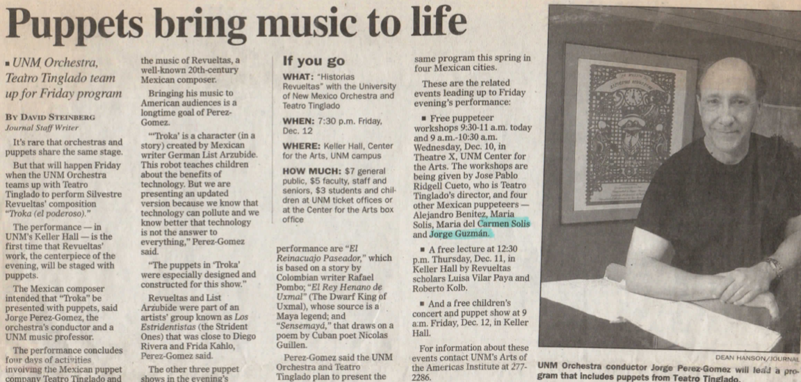 – Puppets (Mireya Cueto & Carmen Solis)